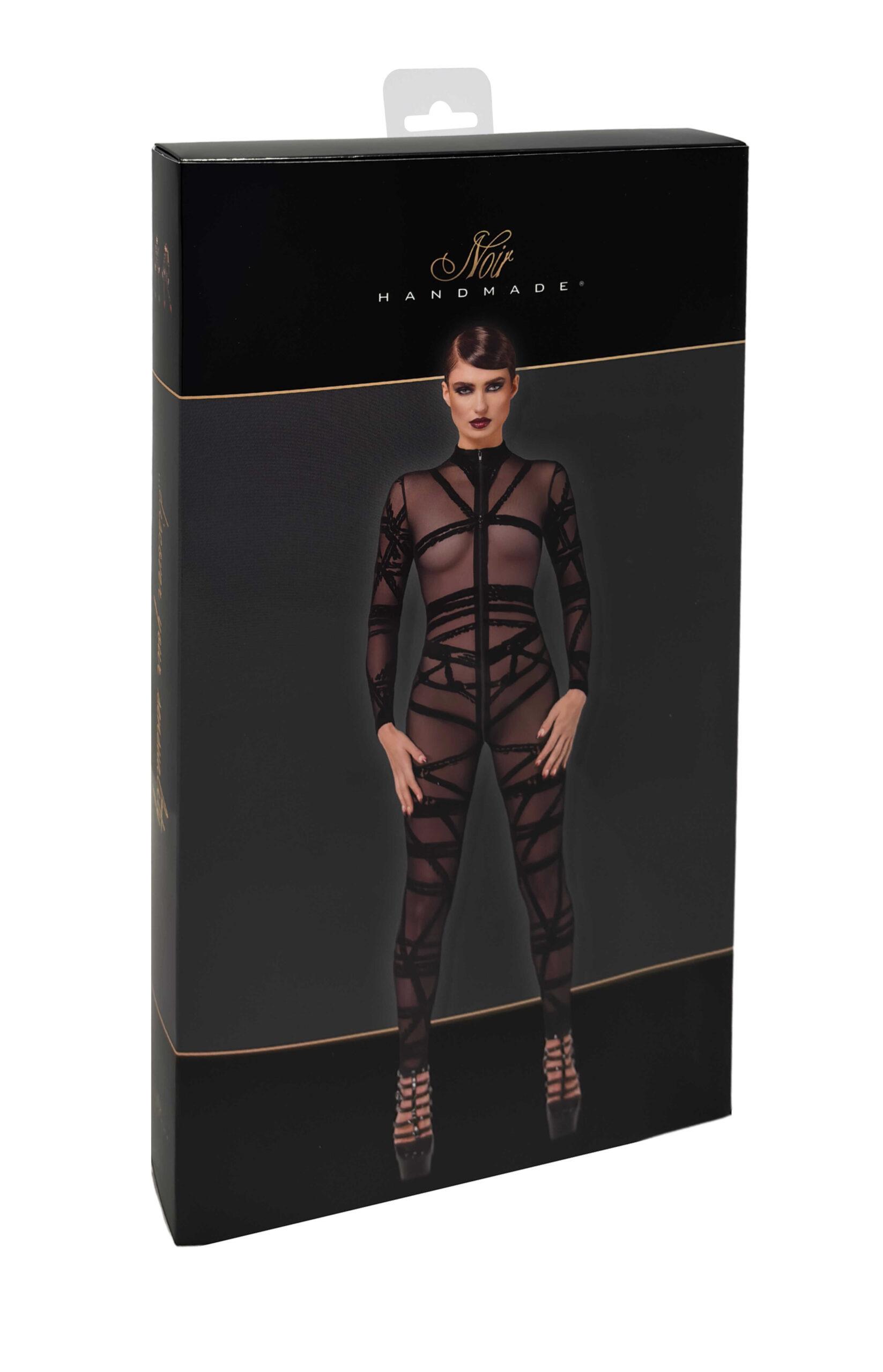 Une combinaison en tulle floquée style bondage avec des manches longues et de longues jambes. Dispose d une fermeture à glissière à trois voies qui permet une exposition réglable et un accès facile.Matière : 86% polyester, 14% elasthan