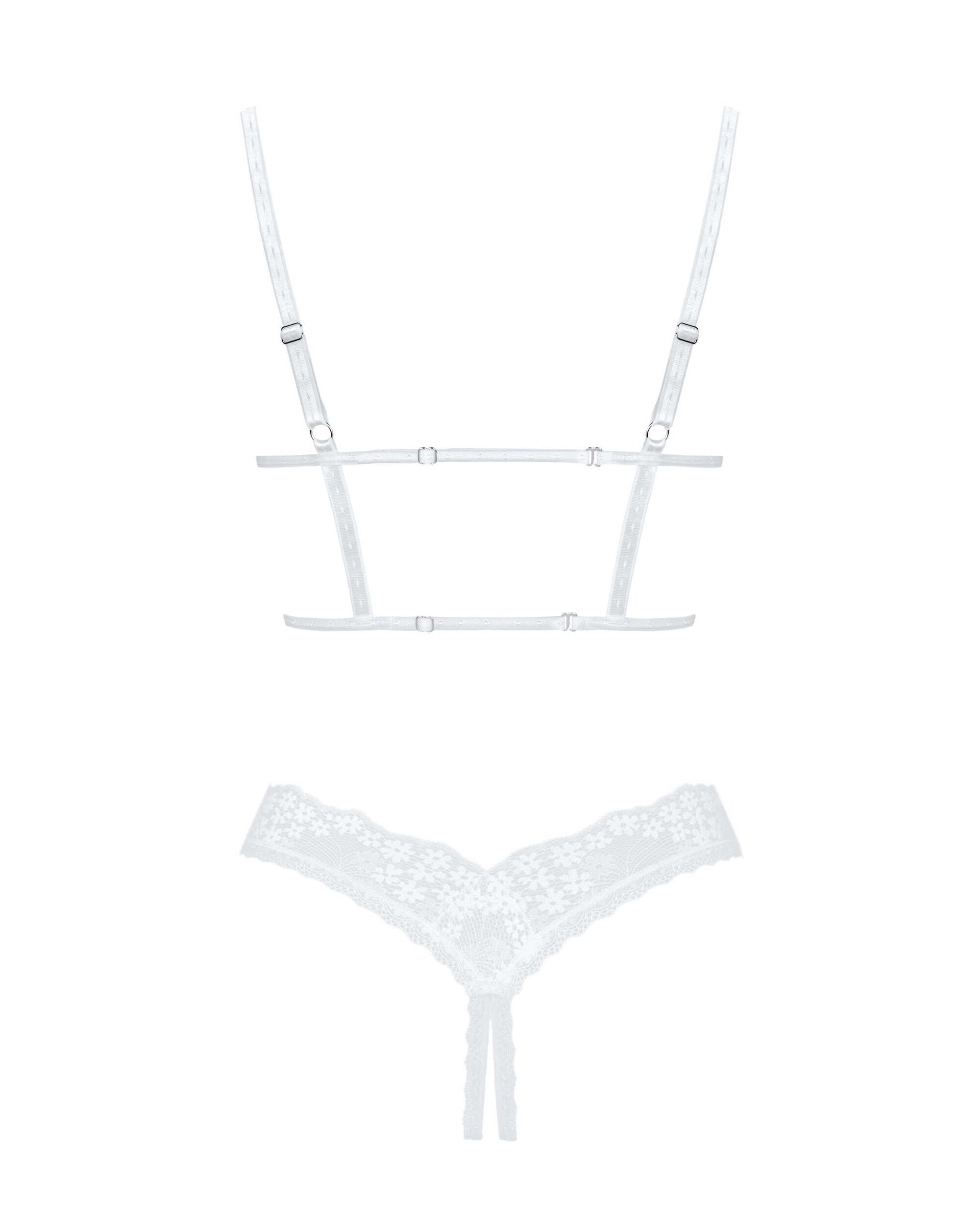 Ensemble ouvert Heavenlly Avez-vous déjà rêvé d'une soirée romantique à forte dose d'épices Rien de plus simple il suffit d'enfiler cet ensemble de lingerie irrésistiblement sexy aux bonnets ouverts et à l'entrejambe ouvert et le tour est joué ! Les instants paradisiaques sont à portée de main ! Nous vous souhaitons une nuit pleine d'amour ! Vérifiez plus de détails :- soutien-gorge ouvert et string entrejambe ouvert- bretelles réglables sur le dos et les épaules - un design unique- pendentif brillant - un accessoire accrocheur- tissus agréables au toucher (90% polyamide, 10% élasthanne)