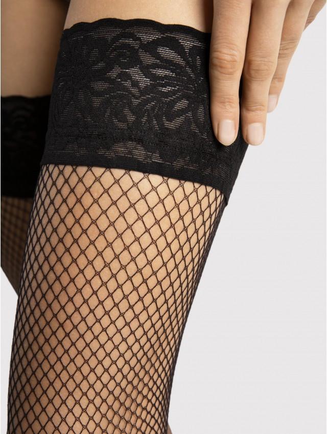 Bas en Résille sensuelle avec dentelle sexy Renforcement invisible et élégant au niveau des orteils. Finition mate intelligente, double bande de silicone pour plus de confort. Idéal pour porter tous les jours ainsi que pour des occasions spéciales. Composition : 86% Polyamide, 14% Élasthanne