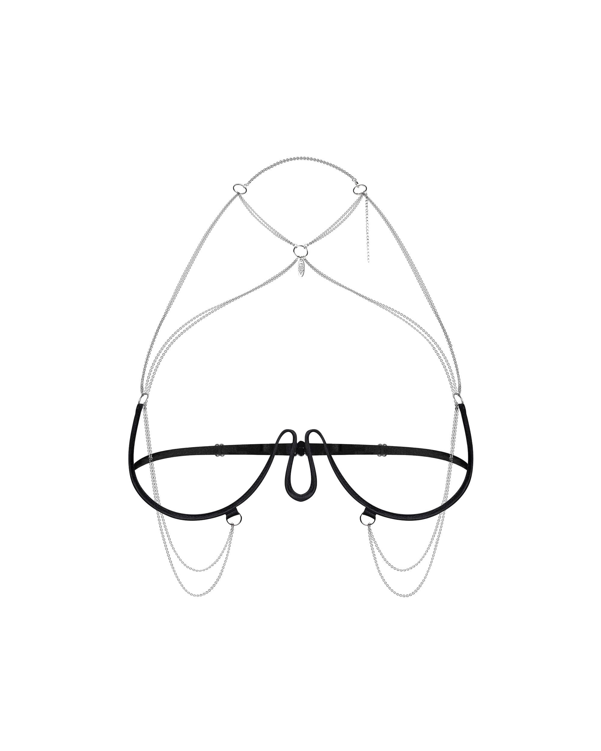Lustique harnais soutien-gorge noirLustique Black Harness est doté d une armature sous le buste pour mettre en valeur votre poitrine et encadrer votre silhouette. Les chaînes argentées s enroulent élégamment autour des épaules et de la taille, créant un look inspiré des bijoux. La construction légère et la fermeture arrière réglable assurent un confort toute la journée, tandis que le pendentif décoratif OSSV ajoute une touche de sophistication.Harnais noirConception ouverte avec désossage sous la poitrine Des chaînes en argent, inspirées de bijoux Pendentif décoratif OSSV Fermeture arrière réglable Sans nickel Disponible en deux couleursConçu dans l UE.Ne convient pas aux enfants de moins de 3 ans risque d étouffement en raison des petites pièces détachables.