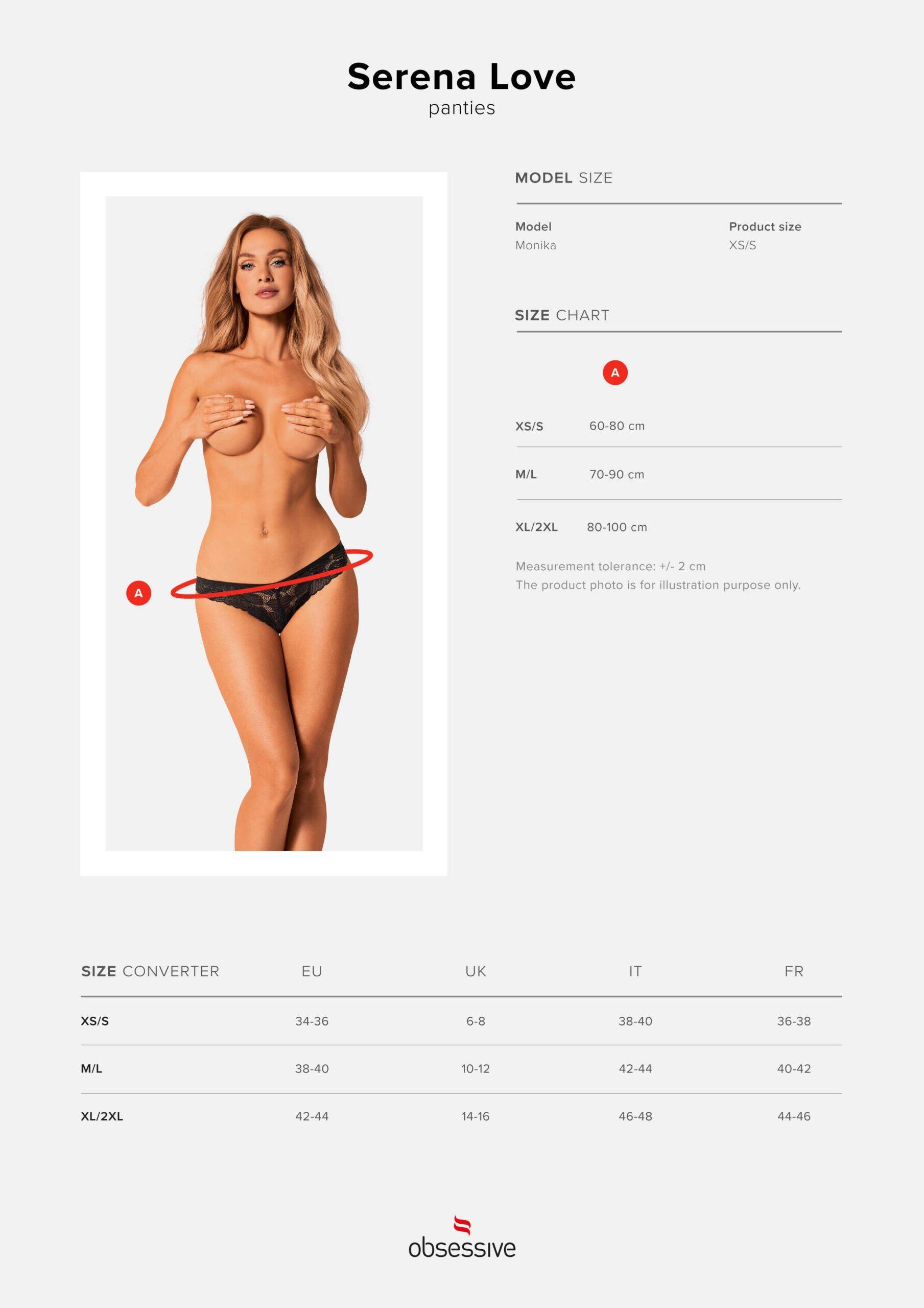 Culotte Serena Love Les culottes Serena Love féminines et extrêmement tentantes décoreront votre corps, ajoutant du sex-appeal. La coupe profonde et audacieuse allongera vos jambes et mettra joliment en valeur vos fesses. De tels sous-vêtements vous empêcheront de penser à ce qui vous attend le soir tout au long de la journée Découvrez plus de détails :- Culotte Serena Love en dentelle fleurie- pendentif brillant sur le devant- coupe profonde à l'arrière - jambes allongées optiquement- tissus agréables au toucher (90% polyamide, 10% élasthanne)